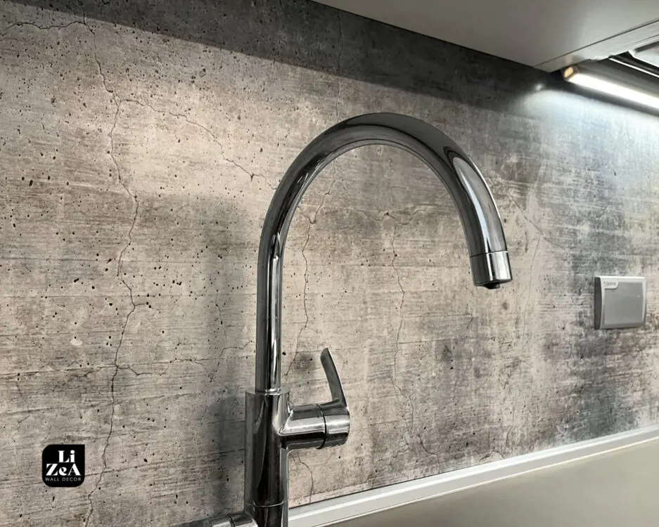 Lo schienale presenta un design dall’aspetto moderno e in stile industrial, caratterizzato da tonalità grigie e un affascinante effetto irregolare che evoca la robustezza del cemento. Questa scelta è ideale per ambienti sofisticati, cucine dai toni beige e porpora o abbinata a complementi d’arredo con texture naturali come il legno grezzo.