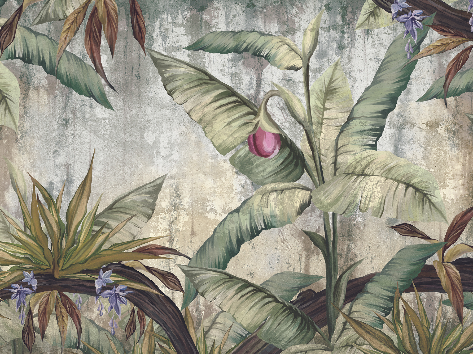 Perfetta per chi desidera uno stile tropicale dal carattere deciso, questa carta da parati si adatta a soggiorni, camere da letto e ambienti dallo spirito contemporaneo. Il suo design combina l’energia della natura con un'estetica urbana e vissuta, per un look unico e di grande impatto visivo.