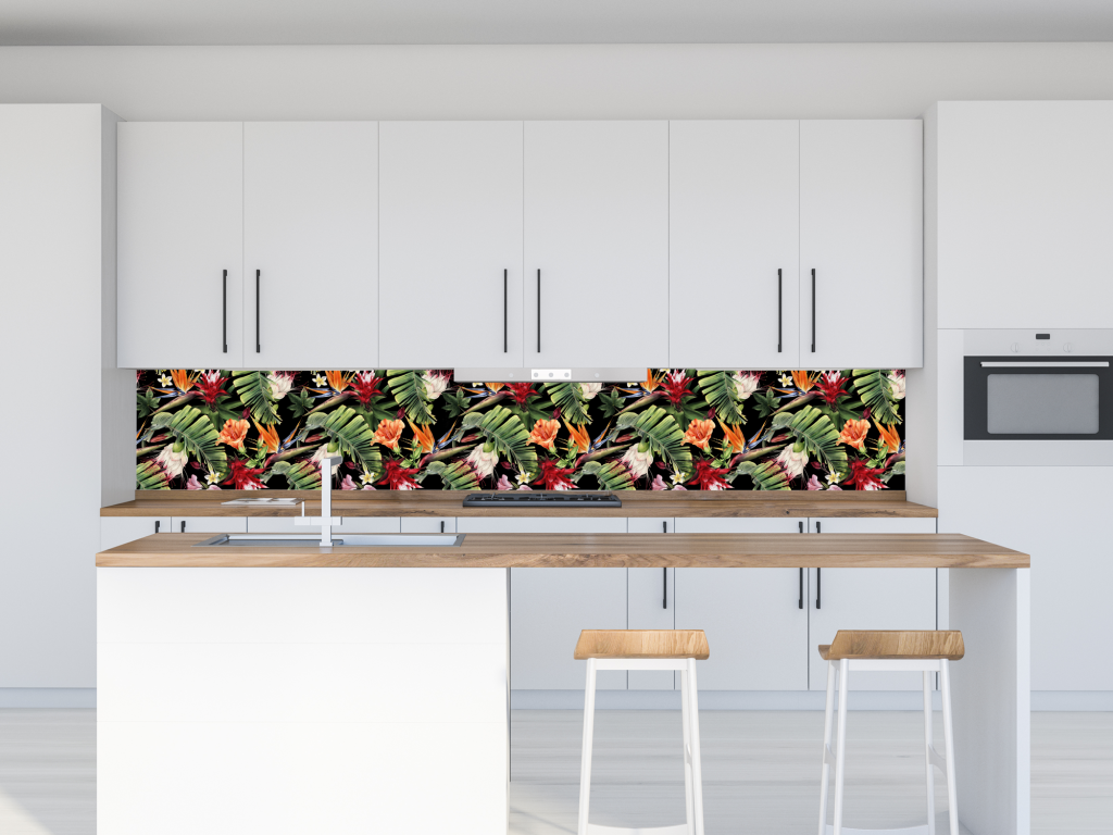Se desiderate dare alla vostra cucina un tocco esotico con pannelli retro cucina dal design tropicale, siete nel posto giusto. I nostri pannelli non solo proteggono lo schienale della cucina ma aggiungono anche uno stile unico. Personalizzate il formato e scegliete tra una varietà di grafiche tropicali per ottenere un preventivo su misura. Non trovate l'immagine perfetta tra le nostre opzioni? Il nostro ufficio grafico può realizzare un'immagine personalizzata. Con Lizea.com, trasformate la vostra cucina in un paradiso tropicale tutto vostro.